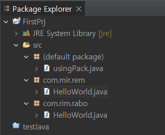 또한 같은 클래스를 다른 패키지로 구성하여 했을 때, 이클립스에서는 각각 실행시킬 수 있다.