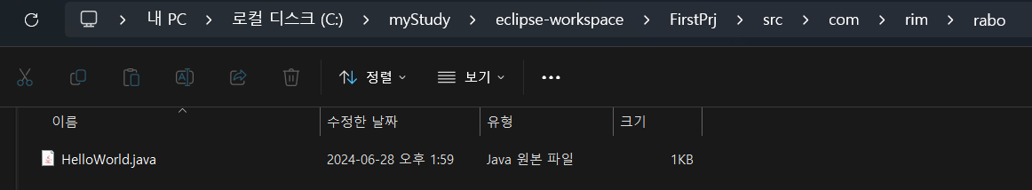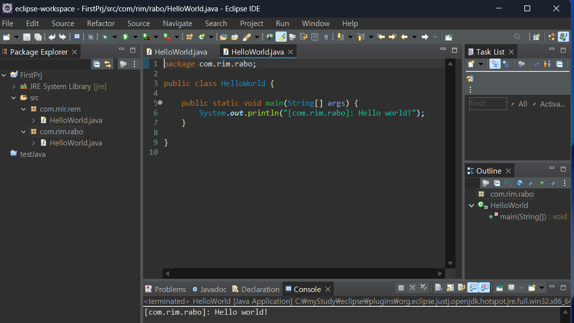 c:\PackageStudy\src\Test1 (com.rim.rabo의 Test class)
