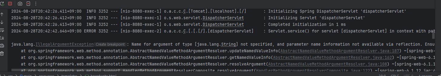 -> 스트링 부트 3.2부터 파라미터를 명시해주어야 한다고 함