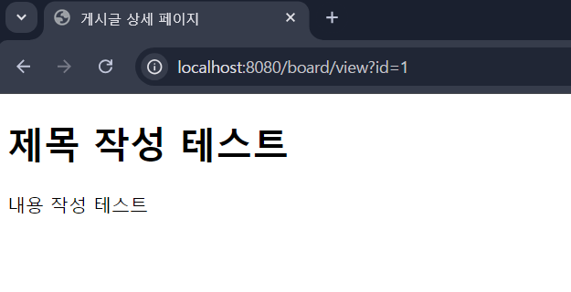 상세페이지는 id로, localhost:8080/board/view?id=1 <-이부분으로 구별하게 된다.
