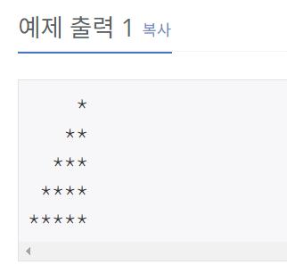 첫째 줄에는 별 1개, 둘째 줄에는 별 2개, N번째 줄에는 별 N개를 찍는 문제 하지만, 오른쪽을 기준으로 정렬한 별(예제 참고)을 출력하시오.