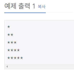 첫째 줄에는 별 1개, 둘째 줄에는 별 2개, N번째 줄에는 별 N개를 찍는 문제