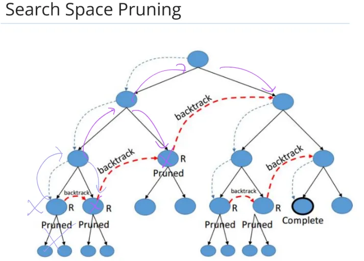 - 탐색 공간에서 불필요한 경로를 제거함으로써 탐색을 효율적으로 줄이고, 더 빠르게 해를 찾을 수 있는 방법임