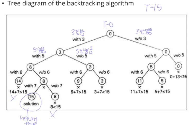 - 주어진 숫자들의 부분집합 중 특정 합을 가지는 경우를 찾는 문제(배열안에서 어떤거를 고르든지 해서 합이 15가 되는 부분집합이 있는지 등)