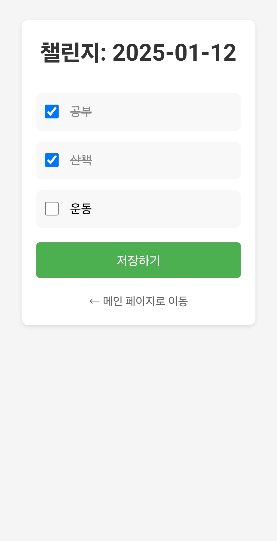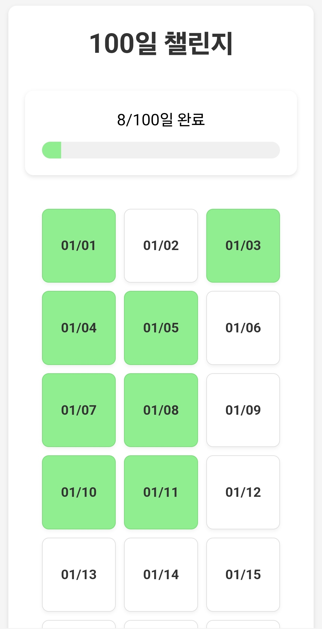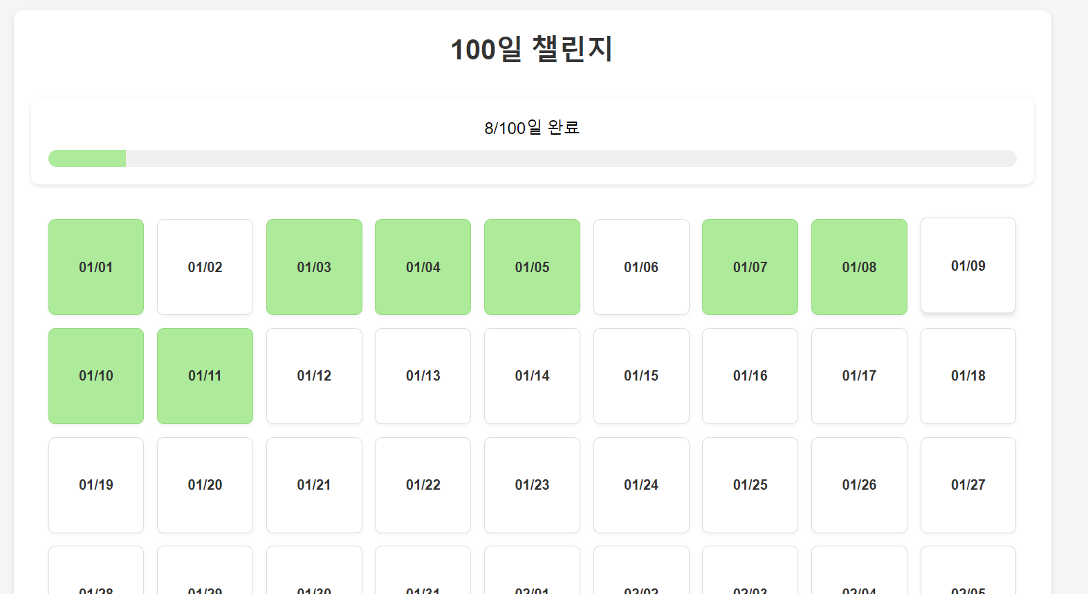 | [토이프로젝트 개발일지 01] 100일 챌린지 웹 (0) | 2025.01.11 |
