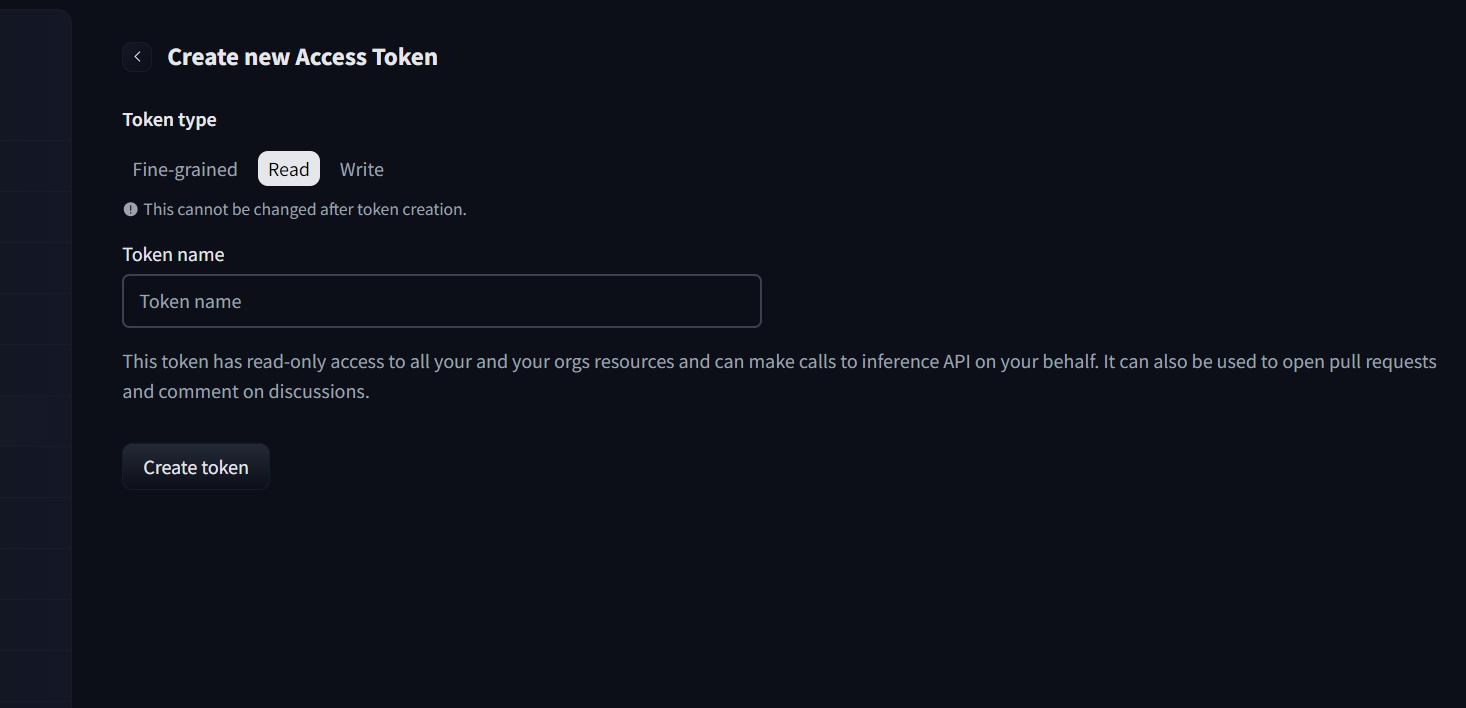 setting -> Access Tokens -> create new Access token -> Read(필요에 따라 선택 가능, 주로 read만 사용)