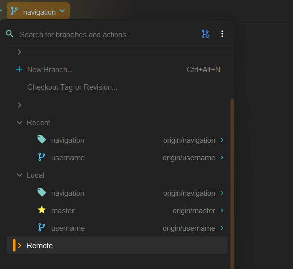 아무튼 인텔리제이에서는 아래 탭에서 브랜치를 선택해서 이동할 수 있다.
