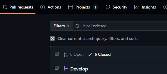 아무튼 pull requests로 develop으로 보내고 나면 해당 이슈는 종료하면 된다. 그럼 프로젝트 탭에서도 자동으로 완료 목록으로 이동하게 된다.