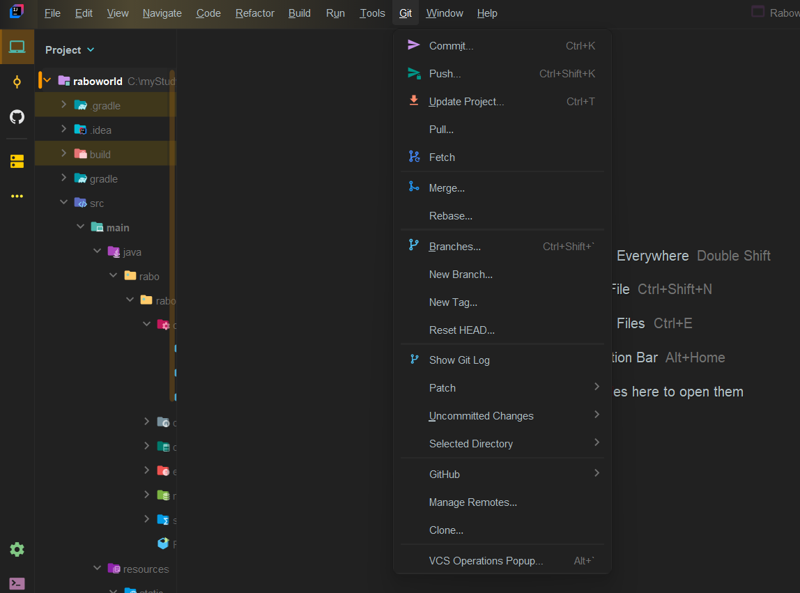 인텔리제이를 이용하면, 웬만한 기능들은 상단바 탭에서 사용할 수 있다.