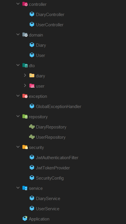 인텔리제이에서 아래와 같이 패키지 구조를 설계했다.
