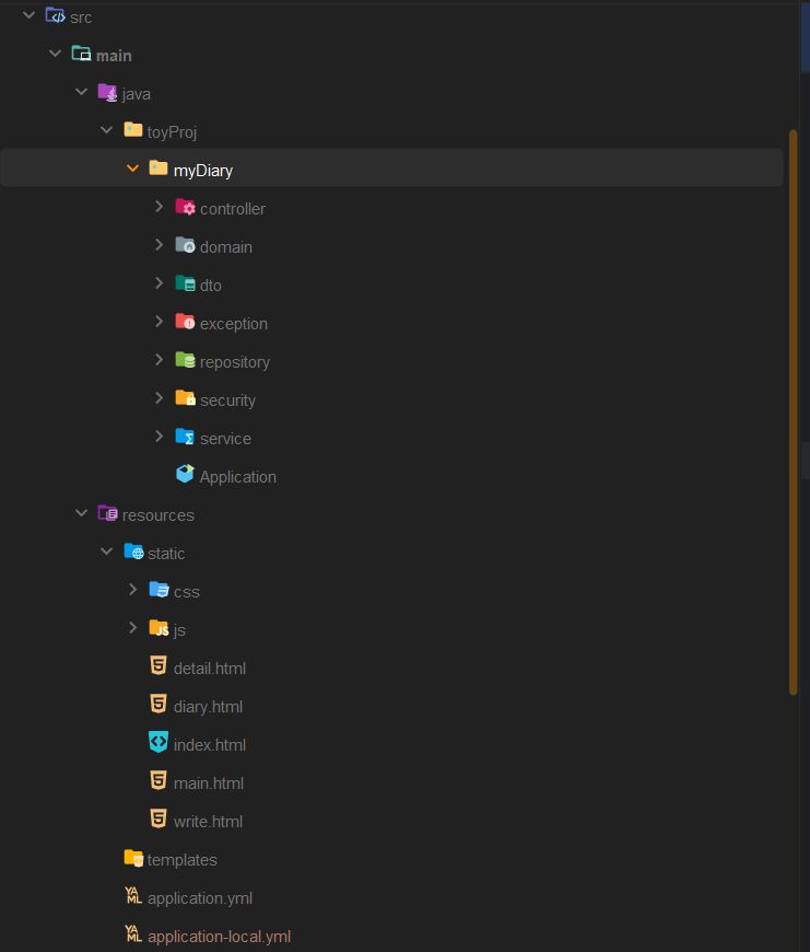 기본적으로 domain, controller, service, repository 계층으로 나눠지고