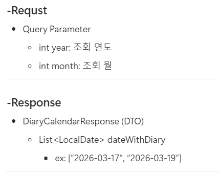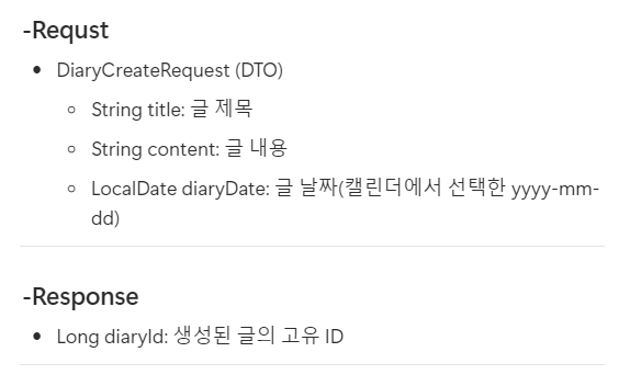 ☆처음 고민 : 캘린더의 날짜 별로 일기를 저장해야 하니까, 그러면 캘린더 엔티티도 만들어서 따로 저장하고 연관 관계를 구성해야 하나? -> diary 엔티티에 날짜 정보를 넣은 다음에, 이후에 캘린더 날짜를 클릭하면 해당 날짜 글만 조회해서 갖고 오는 형식으로 하면 될 듯
